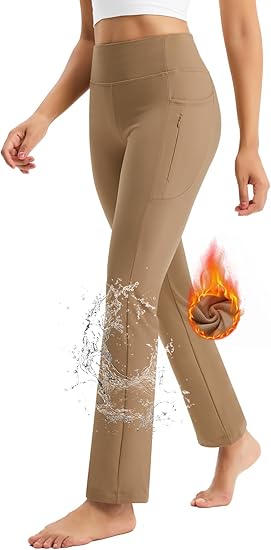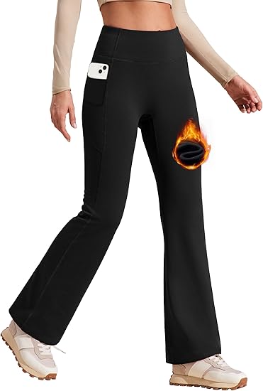 Fleece Lined Pants Women Yoga Pants with Pockets for Women Thermal Pants High Waist Flare Leggings for Winter