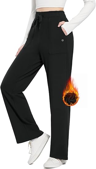 Fleece Lined Thermal Pants Women Sweatpants Wide Leg Water Resistant Casual Lounge with Pockets Yoga Workout