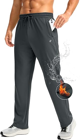 Men's Fleece Lined Sweatpants with Zipper Pockets Winter Warm Water Resistant Athletic Pants for Workout Running