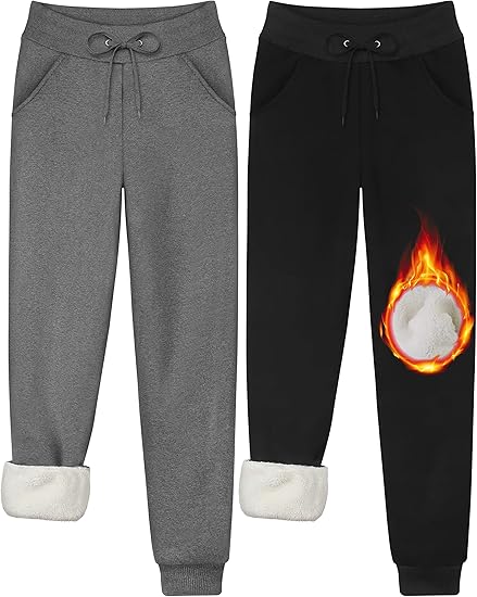 2 Pack Women's Sherpa Lined Sweatpants with Pockets Winter Warm Jogger Sweatpants Athletic Fleece Lined Pants