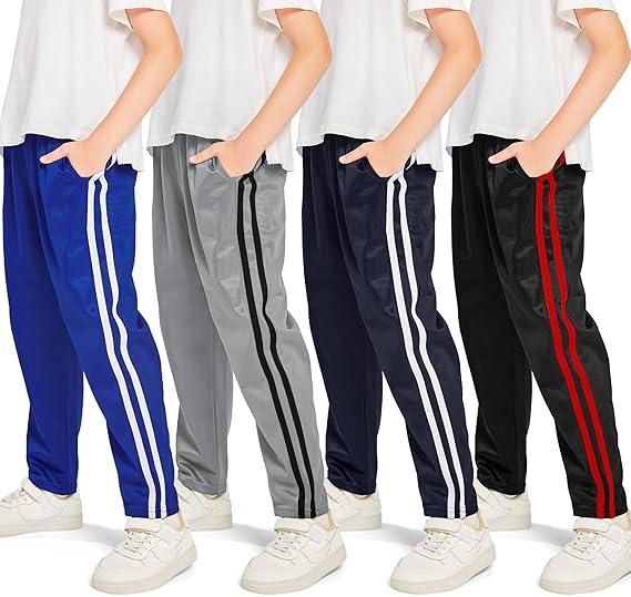 4 Pack Boys' Fleece-Lined Open Bottom Sweatpants Boys Athletic Active Jogger Pants with Pockets and Drawstring