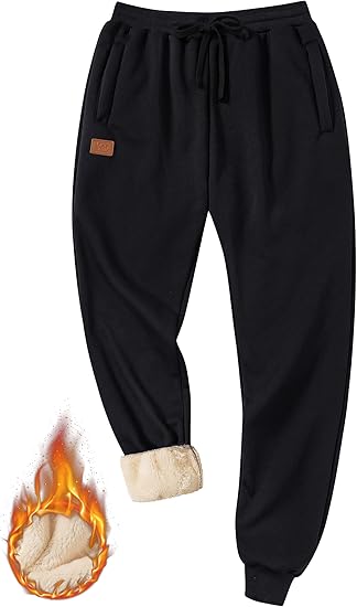 Mens Sherpa Lined Sweatpants Winter Warm Fleece Pants