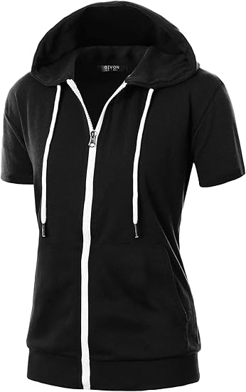 Womens Slim Fit Zip Up Hoodie Short Sleeve Thin Jacket Full Zip Sweatshirt with Plus Size