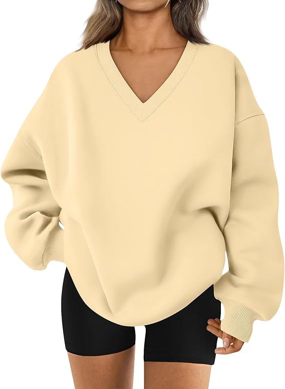 Oversized Sweatshirt for Women Fleece V Neck Fashion Hoodies & Sweatshirts Winter Knit Long Sleeve Shirts Pullover