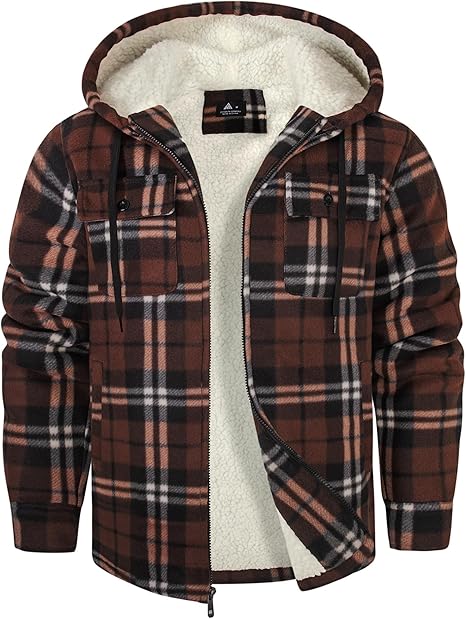 Men's Flannel Shirt Jacket Fleece Sherpa Lined Plaid Jackets Coat Full Zip Up Hoodie Winter Outwear