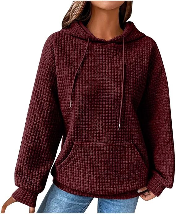Hoodies For Women, Long Sleeve Plus Size Waffle Knit Hooded Sweatshirt Trendy Fall Casual Pullover Tops