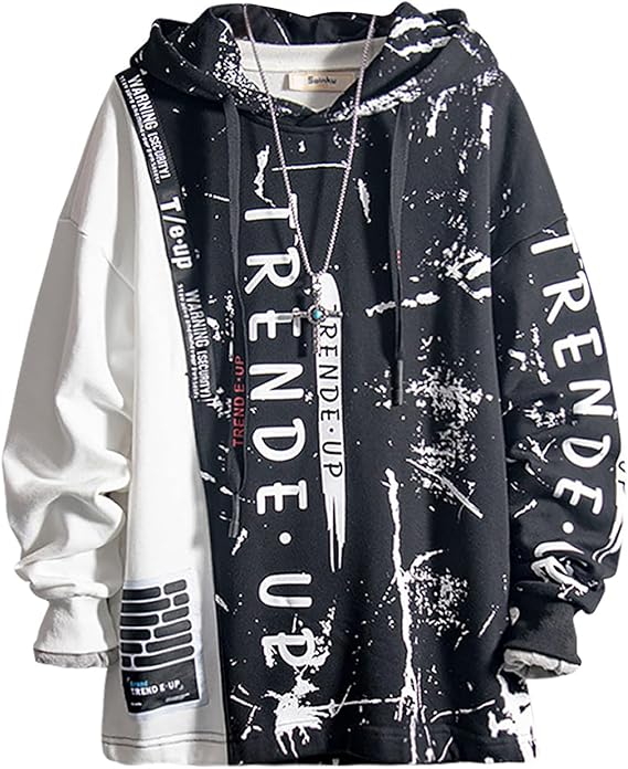 Hoodies for Men Color Block Hoodie with Design Hip Hop Colorful Hooded Pullover Novelty Sweatshirt
