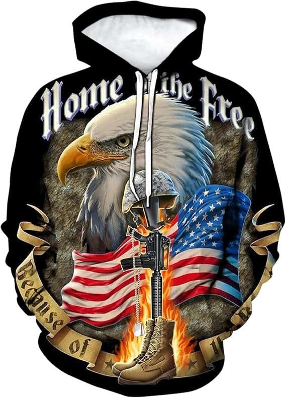 Men's Bald Eagle Hoodie Autumn Winter Long Sleeve Pullover Animal Theme Sweatshirt Realistic Graphic Hoodie