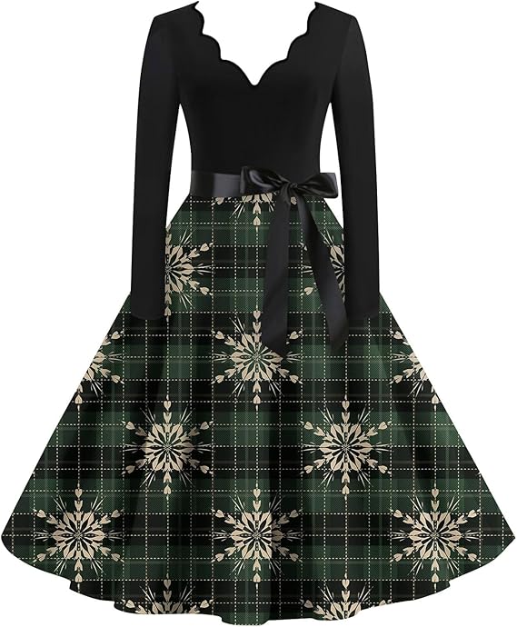 Women Christmas Dress Holiday Sexy Long Sleeve V Neck Dresses with Belt Winter A Line Xmas Party Dress