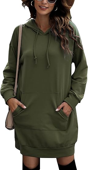 Women Hoodies Dress Hooded Sweatshirts Dress Casual Long Sleeve Tunic Dress Oversized Sweatshirts with Pocket