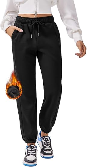 Womens Fleece Sweatpants Cinch Bottom Winter Sweat Pants High Waisted Joggers Pants with Pockets