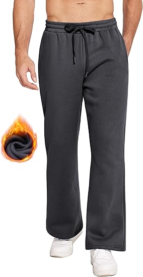 Men's Sweatpants Open Bottom Flared Sweatpants Elastic Waist Fleece Cotton Pants Baggy Warm Sweat Pants with Pockets