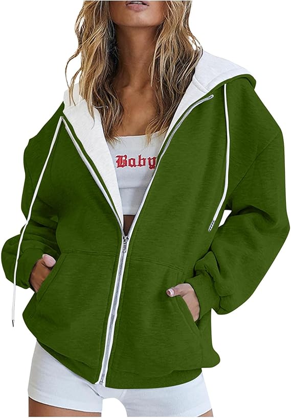 Women's 2024 Fall Oversized Hoodies Sweatshirt Long Sleeve Zip Up Pockets Loose Fit Y2K Winter Jackets Coat