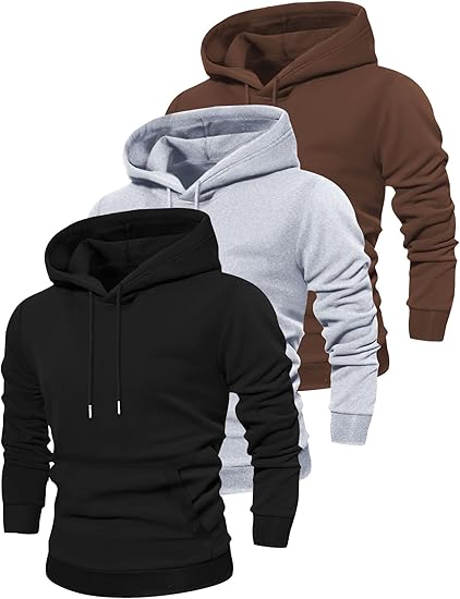 3-Pack Men's Spring And Autumn Thin Long-Sleeved Pocket Hooded Sweatshirts Casual Sports Tops