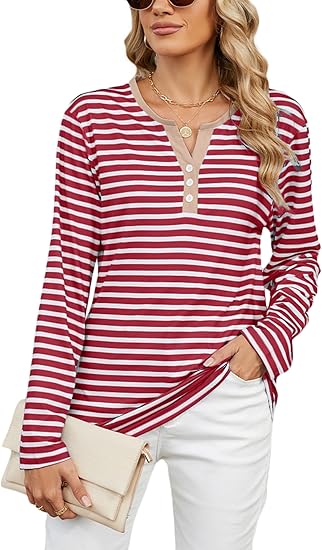 Oversized Striped Sweatshirt for Women, Long Sleeve V Neck Casual Tops Pullover 2024 Fall Y2k Clothes