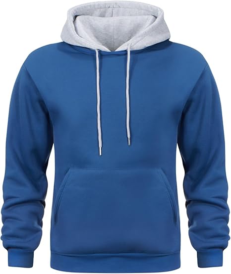 Mens Hoodies Pullover Color Block Fleece Long Sleeve Sweatshirt Tops with Pocket