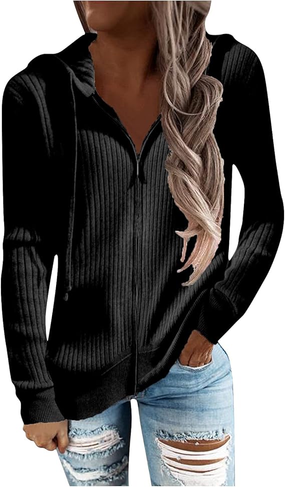 RMXEi Long Sleeve Open Front Cardigans For Women Casual Knit Zip Up Hooded Outwear Sweatshirt Coat