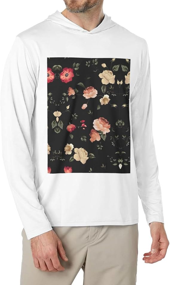 Autumn Beautiful Floral Print Lightweight Hoodie Workout And Casual Wear Men Hooded Long Sleeved Tshirt