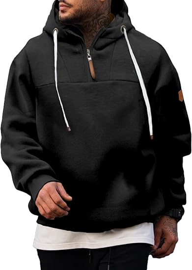 Men's Fashion Hoodies Pullover Casual Sweatshirt Drawstring Cotton Quarter Zip Hoodie with Pocket