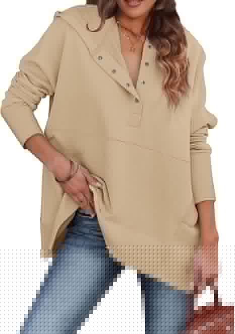 Womens Oversized Hoodies Buttons V Neck Pullover Sweatshirt Casual Loose Sweater Fall Winter Clothes