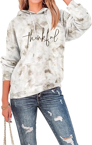 Fall Sweatshirts for Women Thankful Thanksgiving Sweatshirt Autumn Embroidered Hoodies Casual Long Sleeve Pullover Top