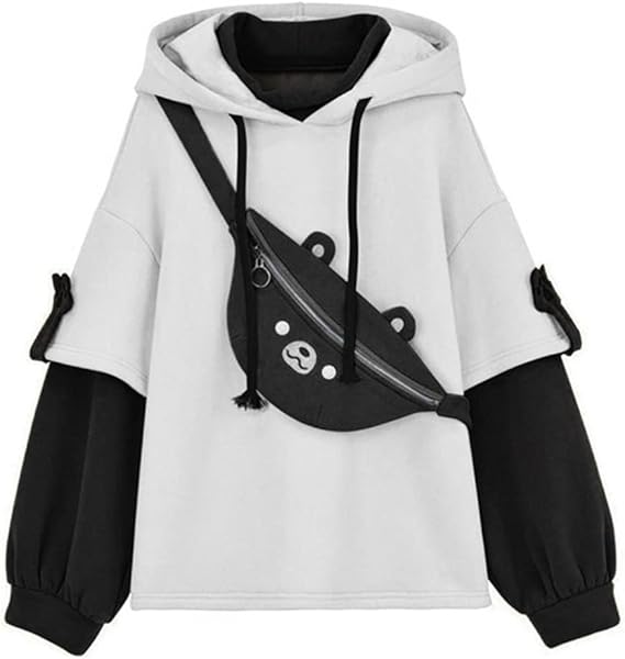 Brown Bear Hoodies Women Cute Autumn Patchwork Teenager Sweatshirts Long Sleeve Pullover with Personality Bag