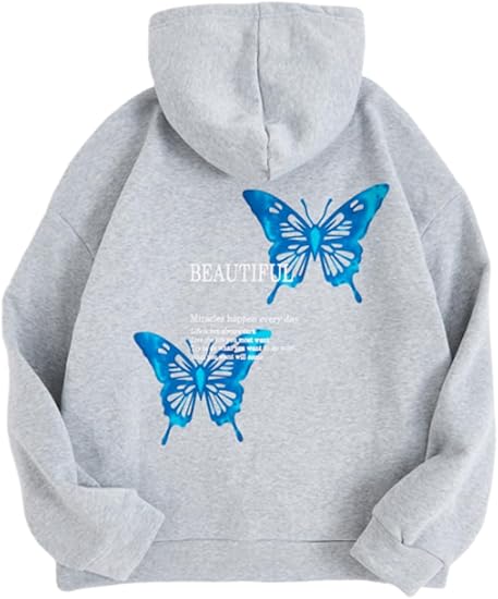 Women's Cute Graphic Hoodies Butterfly Print Y2k Long Sleeve Drop Shoulder Hoodie Sweatshirts