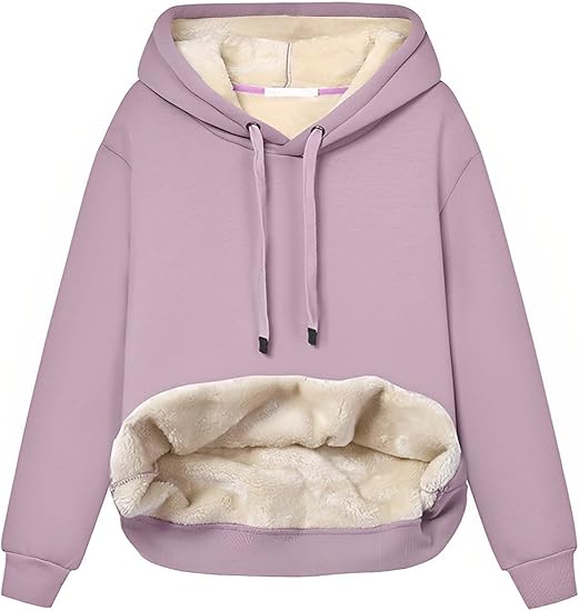 Womens Hooded Sweatshirt Fleece Sherpa Lined Hoodies Winter Causal Loose Fit Pullover