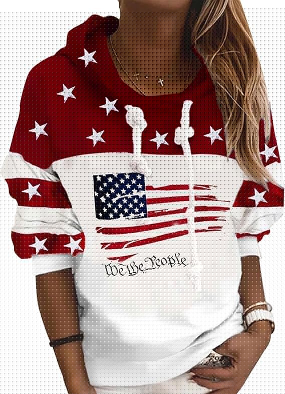 Women's American Flag Hoodie Sweatshirt Fashion Long Sleeve Sweatshirt Top 4th of July Gift Patriotic Sweatshirt Red